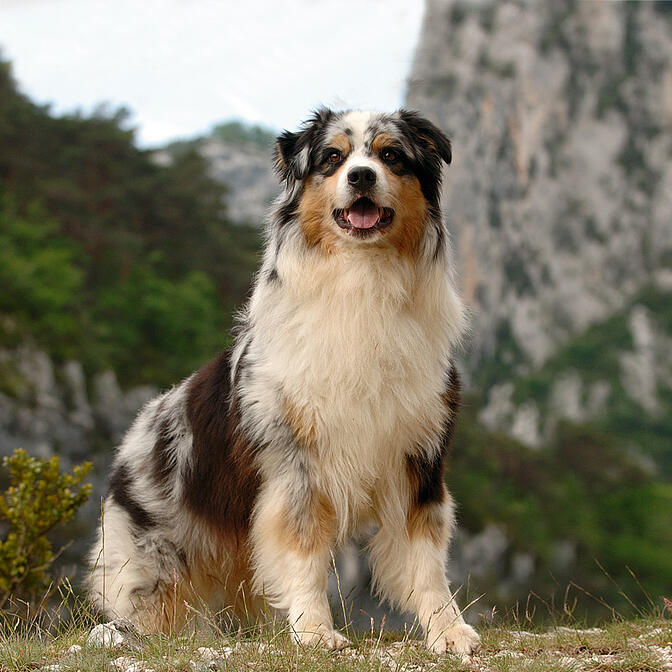 Australian Shepherds are excellent working dogs with a fantastic temperament, this gives them the ability to work well and be a great companion dog. Their distinctive coat in a range of colours can be spectacular.