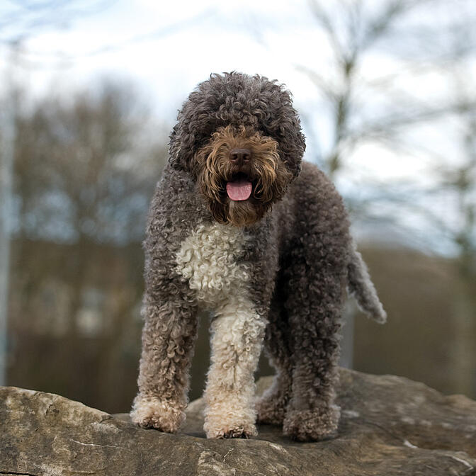 He makes a great family companion. The Romagna Water Dog was originally bred as a truffle hunter.