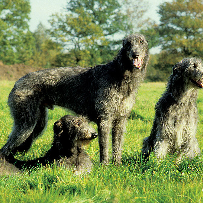 Scottish Deerhounds are magnificent large breed dogs, strong and powerful, yet gracious and elegant, covered in a shaggy, harsh protective coat.