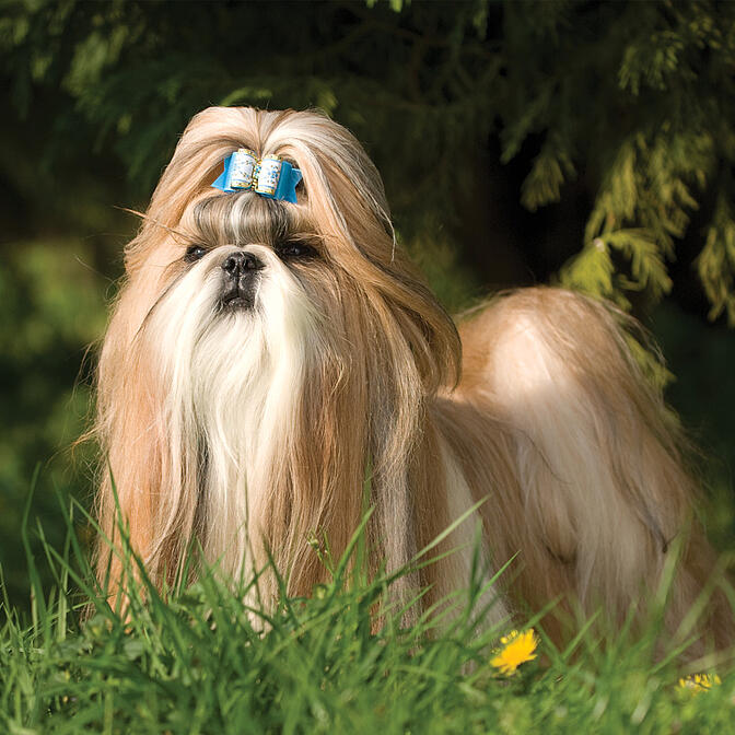 The Shih Tzu is a small, sturdy dog, abundantly covered in soft hair with a distinctively arrogant carriage.