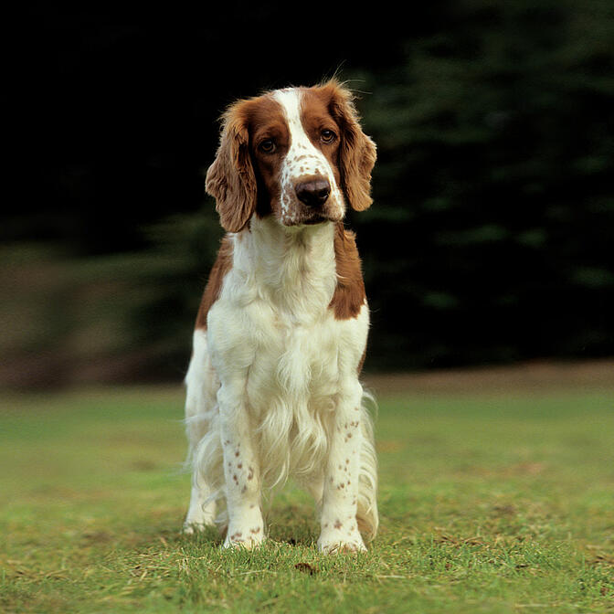 The Welsh Springer Spaniel is attractive in appearance, symmetrical, compact and clearly built for strength and endurance. Amongst the breed's talents are hunting, tracking, retrieving and watchdog.