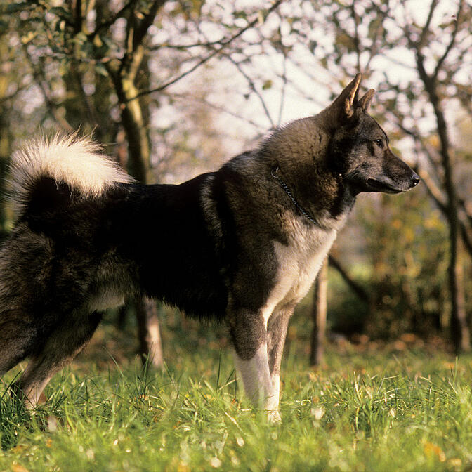 The West Siberian Laika is balanced and lively, has an even temperament and is calm and docile in the home. Self-confident and self-conscious he is a fine hunter, brave and careful and loyal towards his flock, they make good guardians. The West Siberian Laika is a social breed with its family but is reserved towards strangers. Socialisation and training is essential from an early age.